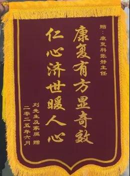 與此同時(shí),科室還收到一面印有“康復(fù)有方顯奇效,仁心濟(jì)世暖人心”字樣的錦旗。在患病期間,患者飽受腰痛、下肢麻木等癥狀折磨,嚴(yán)重影響日常生活。來(lái)到康復(fù)科后,科室負(fù)責(zé)人張靜帶領(lǐng)科室團(tuán)隊(duì)根據(jù)其病情制定個(gè)性化針灸治療方案,通過(guò)精準(zhǔn)取穴、規(guī)范施針,配合專業(yè)康復(fù)指導(dǎo),逐步減輕患者病痛,助其恢復(fù)正常生活?;颊邽楸砀屑?,特贈(zèng)錦旗,錦旗上的話語(yǔ)是對(duì)科室治療效果的高度認(rèn)可。