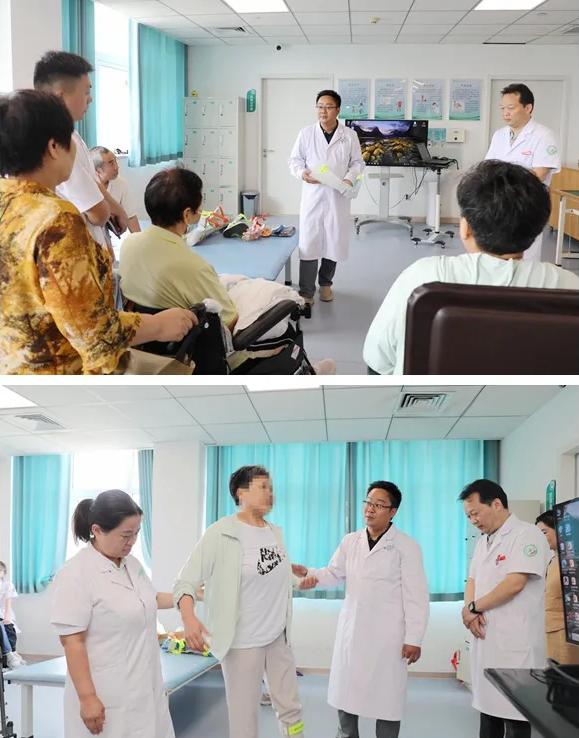 在11樓康復(fù)病區(qū),安恒遠教授深入病房,對科室重點、疑難康復(fù)患者進行了細致的床邊查房和評估,并結(jié)合患者的具體病情、影像資料及當(dāng)前康復(fù)方案,與康復(fù)科醫(yī)護人員進行了深入交流和討論,提出了個體化診療建議和康復(fù)方案優(yōu)化意見。
