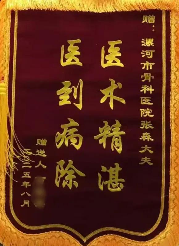 近日,一面繡著“醫(yī)術(shù)精湛,醫(yī)到病除”的錦旗,帶著沉甸甸的感激,送到了漯河醫(yī)專二附院(漯河市骨科醫(yī)院、漯河市立醫(yī)院)康復(fù)科張森醫(yī)生手中。這不僅是患者對治療效果的肯定,更是對他所在團(tuán)隊(duì)的專業(yè)能力與人文關(guān)懷的由衷贊譽(yù)。