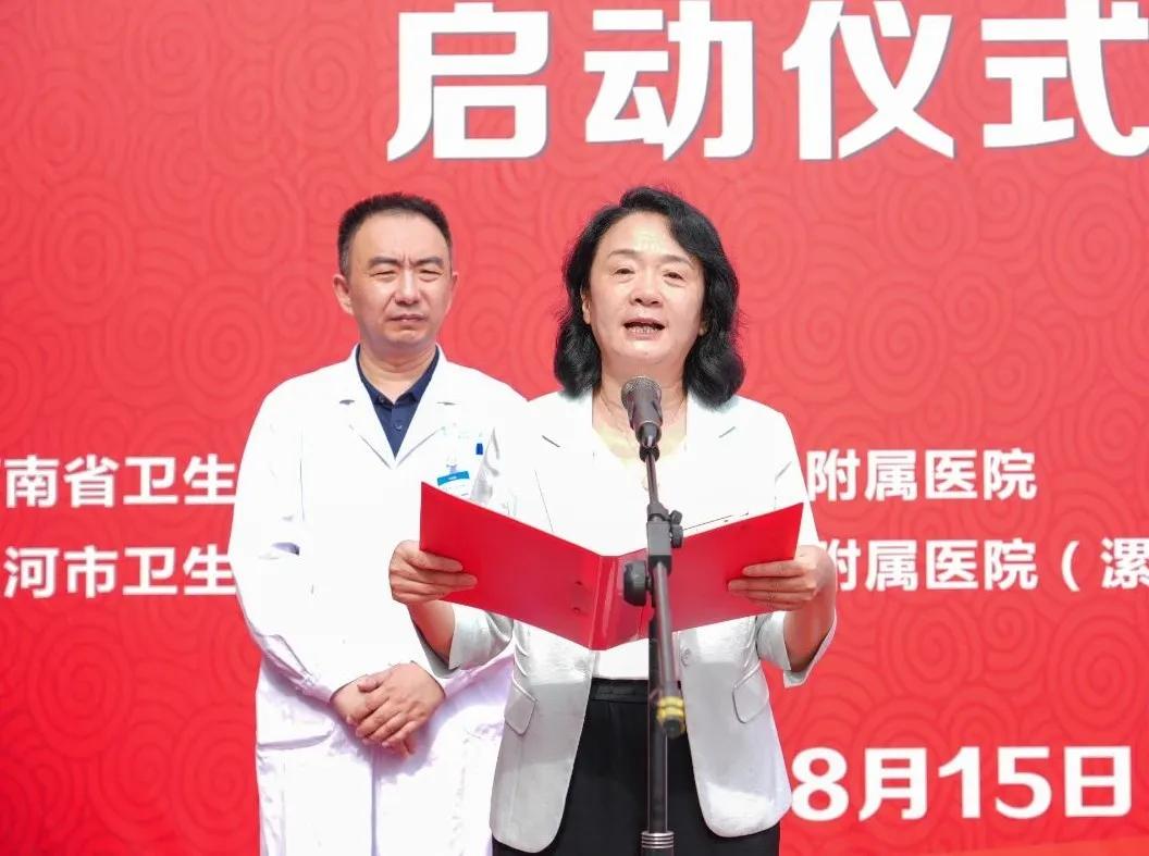 鄭大一附院張鳳妍教授對鄭大一附院眼科學(xué)部、河南省眼科醫(yī)院的學(xué)科建設(shè)情況、白內(nèi)障復(fù)明醫(yī)療隊公益項目開展情況、眼科流動手術(shù)車“復(fù)明16號”項目開展情況等進(jìn)行了介紹。她感謝漯河市父老鄉(xiāng)親的信任,相信“復(fù)明16號”的到來,一定會開啟白內(nèi)障手術(shù)新的光明篇章。希望能夠盡其所能,為更多的患者提供更加優(yōu)質(zhì)的醫(yī)療服務(wù),為基層醫(yī)院培養(yǎng)更多杰出的人才。