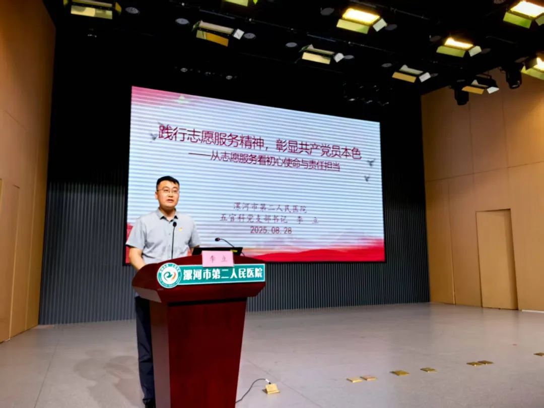 市二院五官科黨支部書記李立以《踐行志愿服務精神,彰顯共產黨員本色——從志愿服務看初心使命與責任擔當》為題,從志愿服務是黨員必修課、志愿服務中的黨性密碼、黨員志愿服務實踐路徑、志愿服務是黨性修養(yǎng)實踐等4個方面,結合醫(yī)院大量的志愿服務實例,講述了市二院黨委如何通過“一支部一品牌”活動的開展來發(fā)揮黨支部的戰(zhàn)斗堡壘作用和黨員的先鋒模范作用。