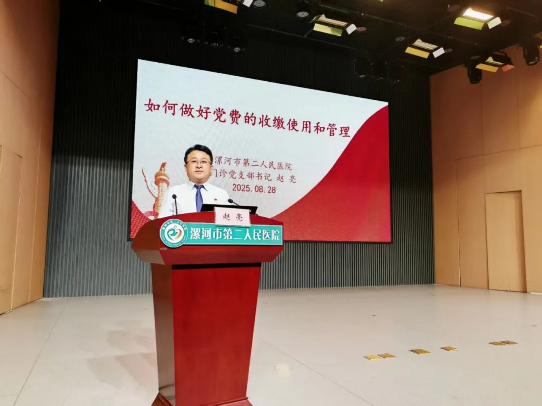 市二院門診黨支部書記趙亮以《如何做好黨費的收繳使用和管理》為題,詳細向大家介紹了黨費的定義、收繳的標準、使用范圍、常見問題等,并結合工作實際列舉了黨費的主要用途和使用規(guī)范,使參會人員深刻認識到繳納黨費不僅是黨員應盡的義務,更是對黨崇高信仰和忠誠的符號,進一步認識到黨費收繳、使用和管理工作的重要性和嚴肅性。