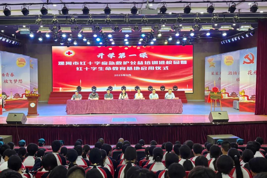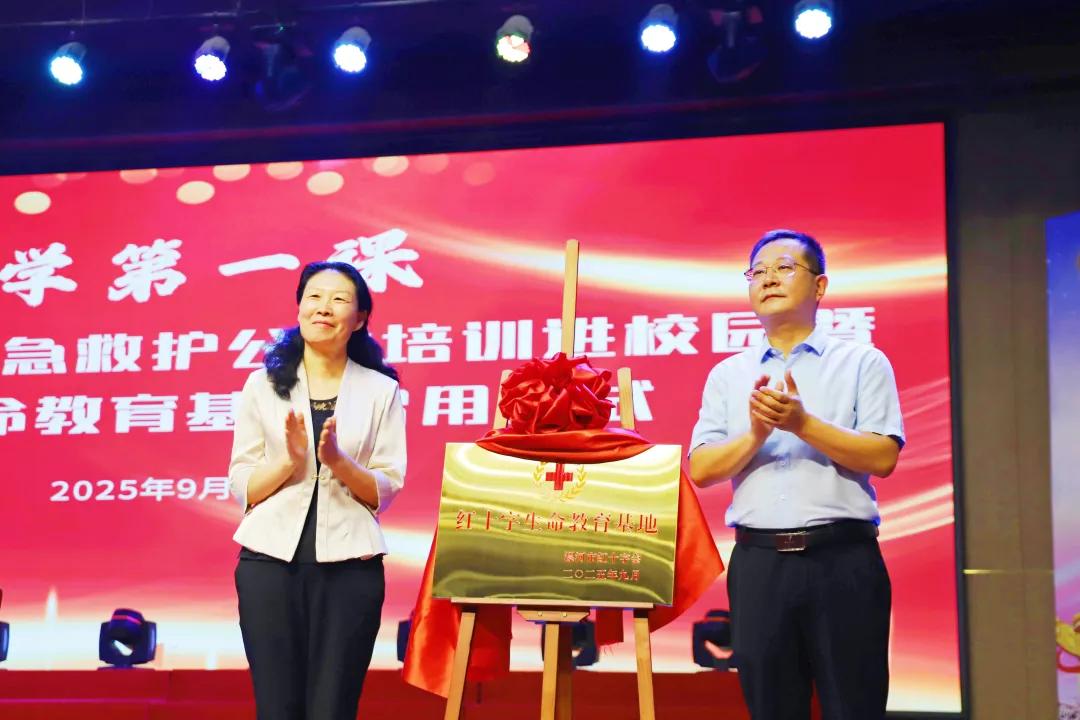 儀式上,郭峰發(fā)表致辭,表示生命教育基地的建立及應(yīng)急救護(hù)培訓(xùn)的開展,是守護(hù)青少年健康成長(zhǎng)的重要舉措。趙國(guó)利宣讀源匯區(qū)實(shí)驗(yàn)學(xué)校紅十字會(huì)批復(fù)文件,孫穎華和郭峰共同為“源匯區(qū)實(shí)驗(yàn)學(xué)校紅十字生命教育基地”揭牌,學(xué)生代表張雅涵上臺(tái)表達(dá)對(duì)應(yīng)急救護(hù)事業(yè)的憧憬,李紅臣介紹了學(xué)校紅十字社團(tuán)的基本情況,闡述了紅十字生命教育基地啟用的重要意義,以及對(duì)未來(lái)發(fā)展的規(guī)劃。