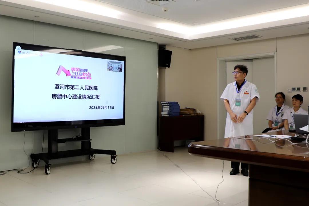 現(xiàn)場核查階段,市二院房顫中心負責人、心血管內(nèi)科病區(qū)主任李慧新從醫(yī)院基本情況、心血管內(nèi)科概況、房顫中心建設(shè)概況以及對房顫中心建設(shè)項目的建議四個方面進行了匯報。