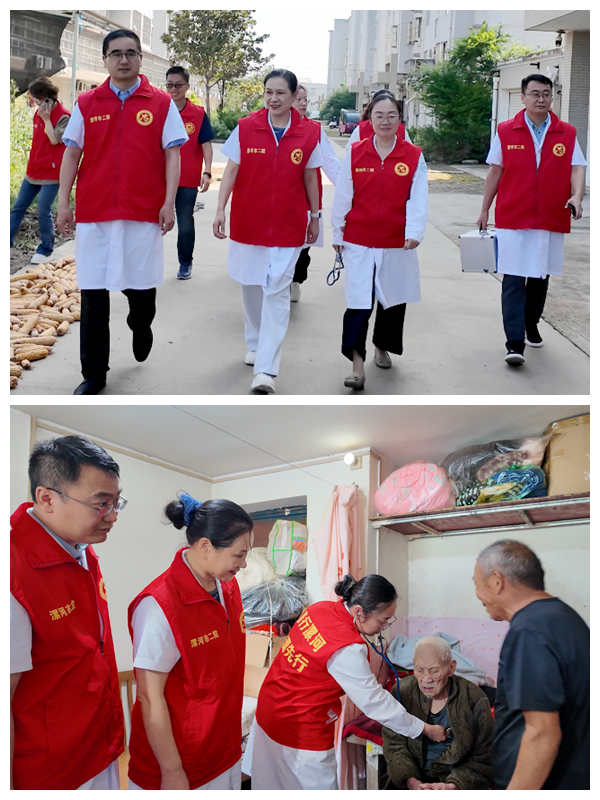 在得知村中兩名百歲老人因行動不便無法前往義診現(xiàn)場后,全國先進(jìn)工作者、全國“五一”勞動獎?wù)芦@得者、中醫(yī)針灸科主任朱青霞帶領(lǐng)醫(yī)護(hù)人員上門為老人服務(wù),進(jìn)行血壓、血糖測量,心電圖檢查,詢問日常飲食和作息情況等,并根據(jù)老人的身體狀況給予了針對性的建議和康復(fù)指導(dǎo)。醫(yī)護(hù)人員還為老人講解了常見疾病的預(yù)防知識,叮囑老人要注意保暖、合理飲食。老人及其家屬對市二院專家團(tuán)隊(duì)的上門服務(wù)感激不已,連聲道謝。