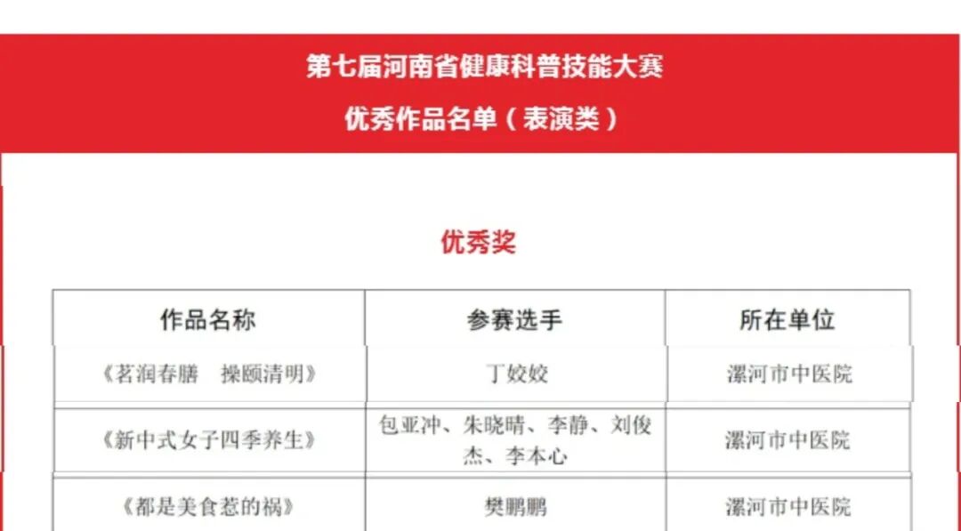 獎(jiǎng)獎(jiǎng)獎(jiǎng)來(lái)了——漯河市中醫(yī)院在第七屆河南省健康科普技能大賽中斬獲佳績(jī)
