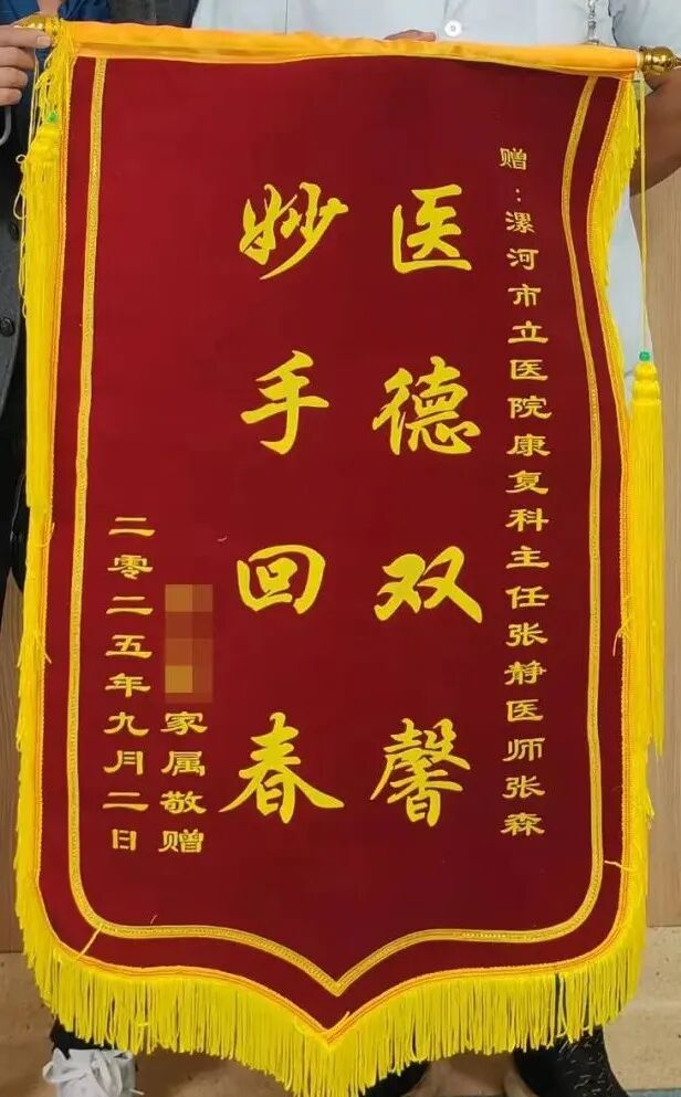“醫(yī)德雙馨,妙手回春”——這面沉甸甸的錦旗,被患者鄭重地送到了漯河醫(yī)專二附院(漯河市骨科醫(yī)院、漯河市立醫(yī)院)康復(fù)醫(yī)學(xué)科張森醫(yī)生手中 ,這是患者對張醫(yī)生真摯的肯定,更是一段從絕望到重生的康復(fù)之路的見證。 一個(gè)半月前,患者因偏癱陷入困境:左側(cè)肢體完全活動不利,神志不清、胡言譫語,溝通障礙,記憶功能受損,生活無法自理??祻?fù)醫(yī)學(xué)科團(tuán)隊(duì)立即制定個(gè)性化方案,中西醫(yī)結(jié)合開啟康復(fù)征程。