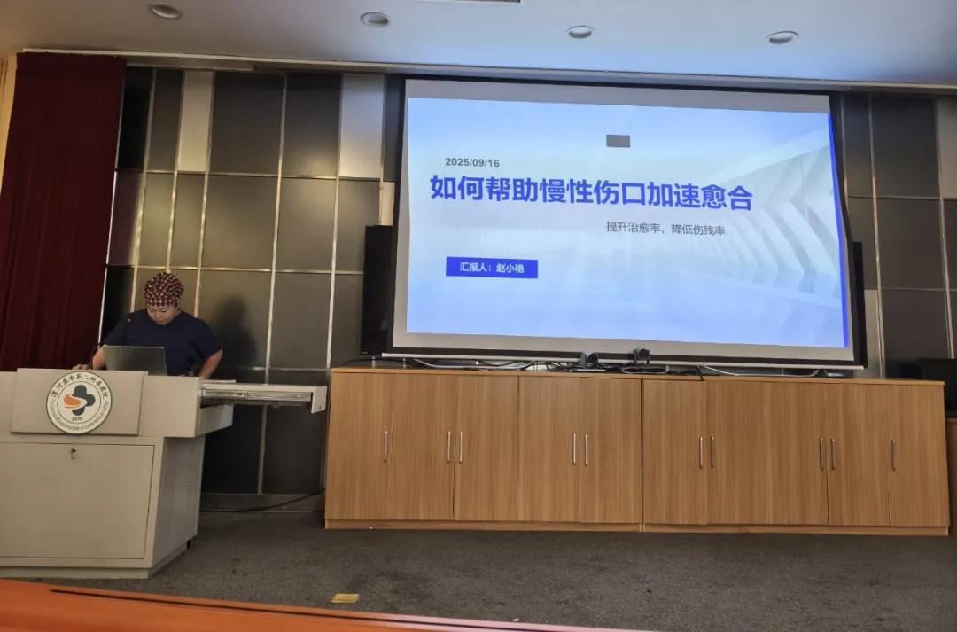 隨后,壓力性損傷/傷口護理學組學術調(diào)研組長趙小艷老師圍繞《如何幫助慢性傷口加速愈合》展開授課。她深入探討慢性傷口愈合延遲的常見誘因,如局部血運、感染、營養(yǎng)不良等,進而系統(tǒng)闡述了個性化護理方案制定、傷口清創(chuàng)技巧、感染防控要點,以及通過優(yōu)化局部環(huán)境、結(jié)合物理治療等促進愈合的實用手段。豐富的內(nèi)容和實用的方法,為護理人員應對慢性傷口難題提供了清晰思路與有效策略。