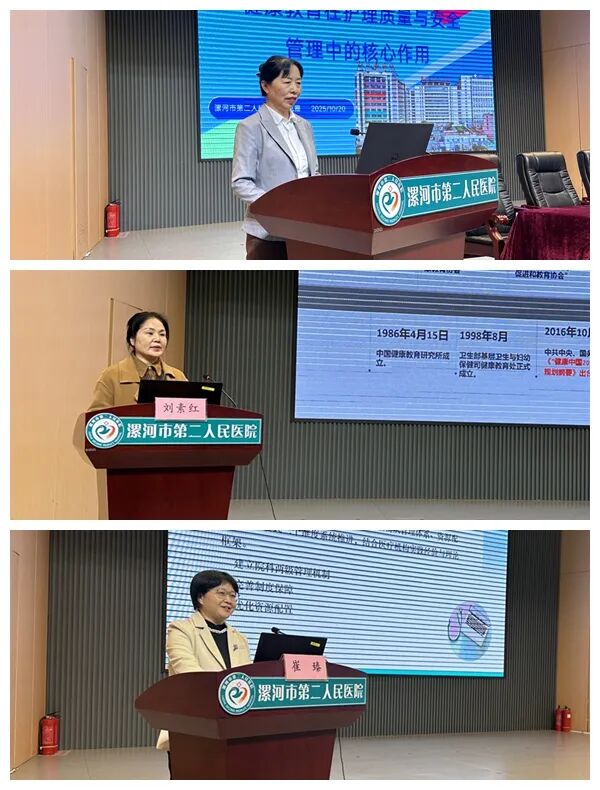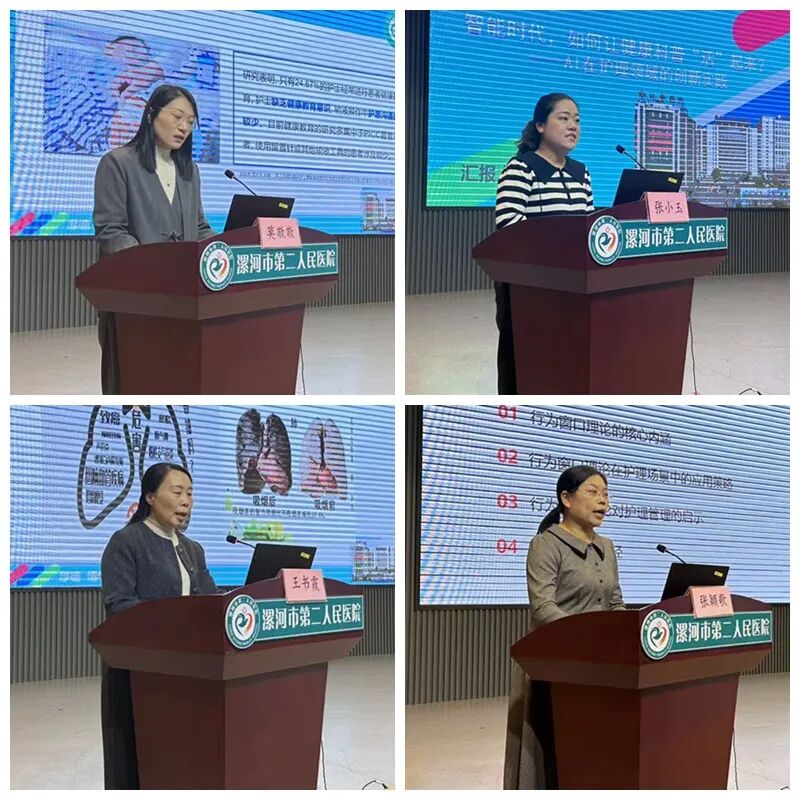 在學(xué)術(shù)交流環(huán)節(jié),多位護(hù)理專家圍繞健康教育的新理念、新方法與新技術(shù)展開(kāi)深入探討。市二院護(hù)理部主任高凱霞分享了《健康教育在護(hù)理質(zhì)量與安全管理中的核心作用》;市中心醫(yī)院護(hù)理部副主任劉素紅講解了《基于賦能理論構(gòu)建三級(jí)醫(yī)院健康教育護(hù)士健康素養(yǎng)提升路徑》;市六院護(hù)理部副主任崔臻以《賦能·融合——構(gòu)建新時(shí)代醫(yī)院護(hù)理健康教育體系的實(shí)踐與思考》為題進(jìn)行交流;臨潁縣人民醫(yī)院護(hù)理部副主任張潁歌介紹了《基于行為窗口理論的護(hù)士高效能溝通技巧》;市二院普外科護(hù)士長(zhǎng)王書(shū)霞圍繞《腫瘤患者營(yíng)養(yǎng)與身心健康:吃出健康,動(dòng)出活力》展開(kāi)講解;麻醉手術(shù)部副護(hù)士長(zhǎng)莫敬敬探討了《基于指南的靜脈治療健康教育及溝通模式》;小兒外科骨干護(hù)士張小玉則就《智能時(shí)代,如何讓健康科普“活”起來(lái)?——AI在護(hù)理領(lǐng)域的創(chuàng)新實(shí)踐》進(jìn)行分享。專家們結(jié)合臨床實(shí)例,展示了健康教育的最新成果與實(shí)踐經(jīng)驗(yàn),內(nèi)容充實(shí),視角多元,為參會(huì)者帶來(lái)深刻啟發(fā)。