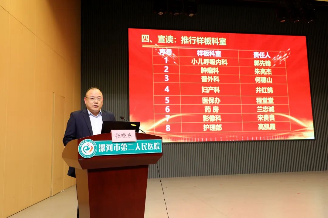 黨委副書記、院長(zhǎng)胡海英宣布漯河市第二人民醫(yī)院8S精益管理項(xiàng)目正式啟動(dòng),標(biāo)志著醫(yī)院在精益管理升級(jí)之路上邁出關(guān)鍵一步,全場(chǎng)響起熱烈掌聲。