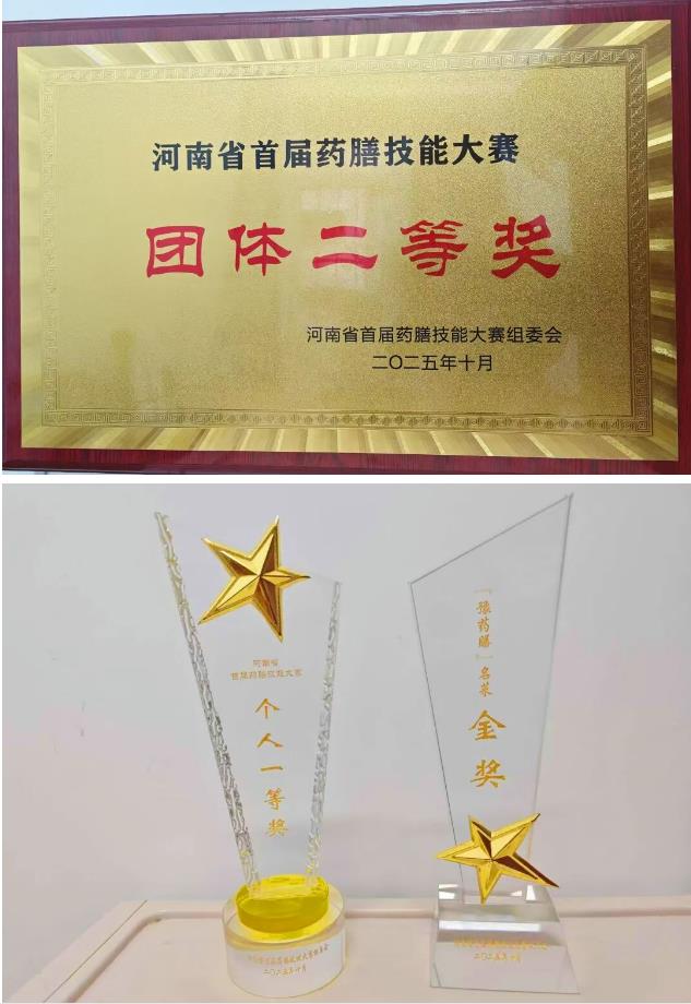 2025 年10月22日至24日,河南省首屆藥膳技能大賽在南陽市醫(yī)圣文化園隆重舉辦。在這場高規(guī)格賽事中,漯河市中醫(yī)院參賽隊伍憑借深厚的中醫(yī)藥底蘊與精湛的烹飪技藝嶄露頭角,取得優(yōu)異成績,摘得數(shù)座獎杯,成為賽事中的最亮眼存在。藥學部白冰制作的金湯萸杞護肝盞憑借獨特的創(chuàng)意及絕佳口感與科學的養(yǎng)生功效,脫穎而出,榮獲 “豫藥膳名菜” 金獎第一名,成為本次大賽的焦點之作。