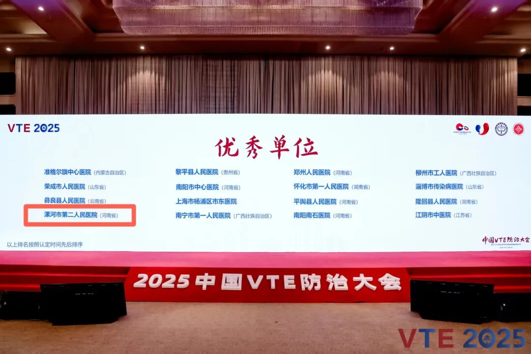 2025年10月31日,由全國肺栓塞和深靜脈血栓形成防治能力建設(shè)項目辦公室、協(xié)同醫(yī)療健康基金會聯(lián)合主辦的“2025年中國VTE防治大會”在北京成功舉行。會上,漯河市第二人民醫(yī)院憑借扎實的防治成效與規(guī)范的管理體系,被授予“全國肺栓塞和深靜脈血栓形成防治能力建設(shè)項目優(yōu)秀單位”稱號。副院長張曉東代表醫(yī)院參會并接受授牌,這也是當(dāng)前漯河市域內(nèi)唯一通過此項國家評審的醫(yī)療機構(gòu)。