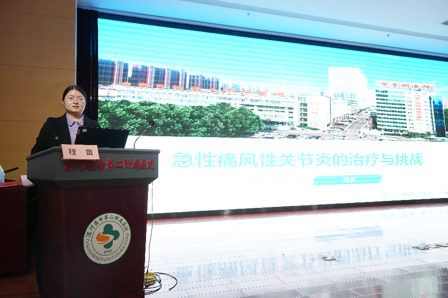 程苗醫(yī)生則從臨床常見疾病切入,分享《急性痛風(fēng)性關(guān)節(jié)炎治療與選擇》,針對急性期鎮(zhèn)痛、降尿酸時機等臨床爭議點,明確“快速抗炎+階梯式降尿酸”的規(guī)范化流程,為基層醫(yī)生的實操決策提供了清晰指引。