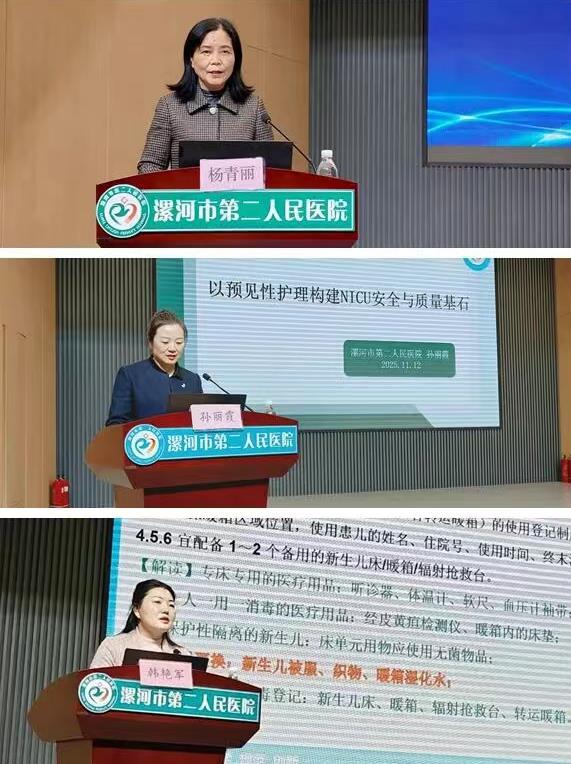 學(xué)術(shù)交流環(huán)節(jié),市中心醫(yī)院NICU護(hù)士長(zhǎng)楊青麗以《新生兒低血糖臨床規(guī)范管理專家共識(shí)》(2021)為題,系統(tǒng)闡述了新生兒低血糖的“預(yù)防、篩查、干預(yù)、隨訪”四個(gè)重點(diǎn);市二院護(hù)理部副主任孫麗霞分享了《以預(yù)見性護(hù)理構(gòu)建NICU安全與質(zhì)量基石》,點(diǎn)明預(yù)見性護(hù)理是NICU生命安全保障的基石,也是質(zhì)量持續(xù)提升的第一道防線;市二院感控辦副主任韓艷軍以《新生兒病區(qū)醫(yī)院感染預(yù)防與控制標(biāo)準(zhǔn)》進(jìn)行了交流,闡明要嚴(yán)守感控標(biāo)準(zhǔn),筑牢安全防線,保障每一位新生兒的健康與安全;市婦幼保健院兒科護(hù)士長(zhǎng)鄭文韜以《高危兒靜脈通路的合理選擇》展開,講解了高危兒靜脈通路的選擇,核心在于基于個(gè)體評(píng)估,實(shí)現(xiàn)安全與療效的最佳平衡;市二院靜療??谱o(hù)士李艷結(jié)合《兒童靜療常見并發(fā)癥的預(yù)防及處理》,提出兒童靜療安全,核心在于以預(yù)防為首;市二院傷口造口??谱o(hù)士馬美華分享了《兒童常見皮膚護(hù)理與管理》,闡述嚴(yán)守預(yù)防底線,踐行精細(xì)照護(hù),是守護(hù)新生兒稚嫩肌膚、避免醫(yī)源性皮膚損傷的根本之道。