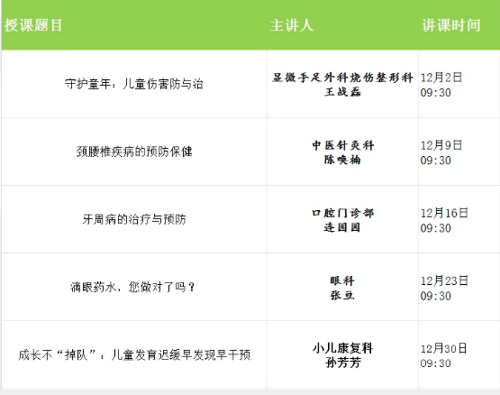 2.每場(chǎng)講座前,醫(yī)院公眾號(hào)會(huì)推送詳細(xì)預(yù)告。