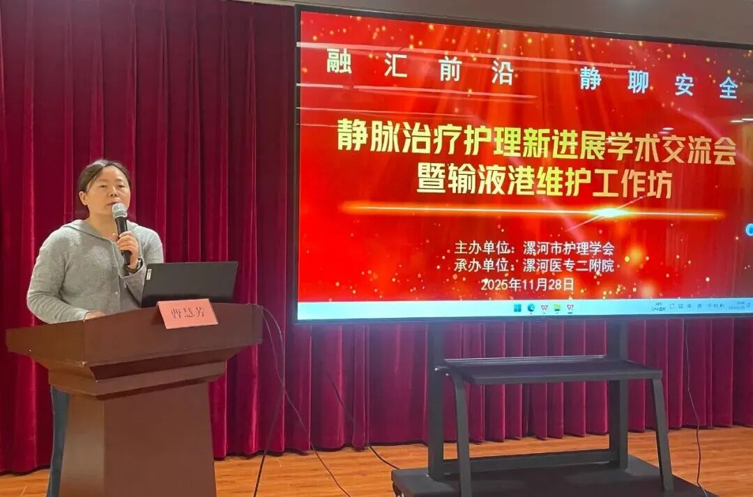 為進(jìn)一步提升靜脈治療護(hù)理質(zhì)量,規(guī)范臨床操作流程,保障患者安全,11月28日,漯河醫(yī)專(zhuān)二附院(漯河市骨科醫(yī)院、漯河市立醫(yī)院)靜療學(xué)組舉辦“靜脈治療護(hù)理新進(jìn)展學(xué)術(shù)交流會(huì)暨輸液港維護(hù)工作坊”。會(huì)議由護(hù)理部副主任曹慧芳主持。