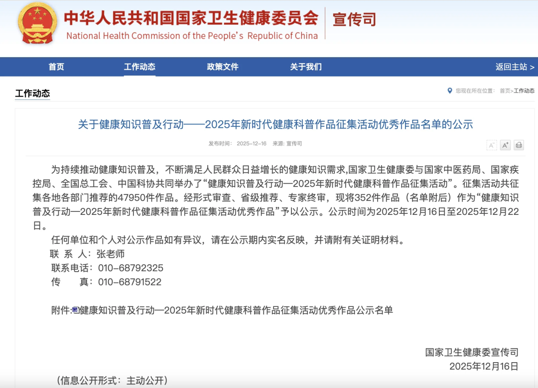 近日,由國(guó)家衛(wèi)生健康委與國(guó)家中醫(yī)藥局、國(guó)家疾控局、全國(guó)總工會(huì)、中國(guó)科協(xié)共同舉辦了“健康知識(shí)普及行動(dòng)--2025 年新時(shí)代健康科普作品征集活動(dòng)”。經(jīng)形式審查、省級(jí)推薦、專家終審,市中醫(yī)院包亞沖、朱曉晴、李靜、劉俊杰團(tuán)隊(duì)精心創(chuàng)作的健康科普作品《新中式女子四季養(yǎng)生》,從全國(guó)近5萬部參賽作品中脫穎而出,斬獲國(guó)家級(jí)“優(yōu)秀作品”獎(jiǎng),成為本次大賽中漯河市唯一獲此國(guó)家級(jí)殊榮的作品。