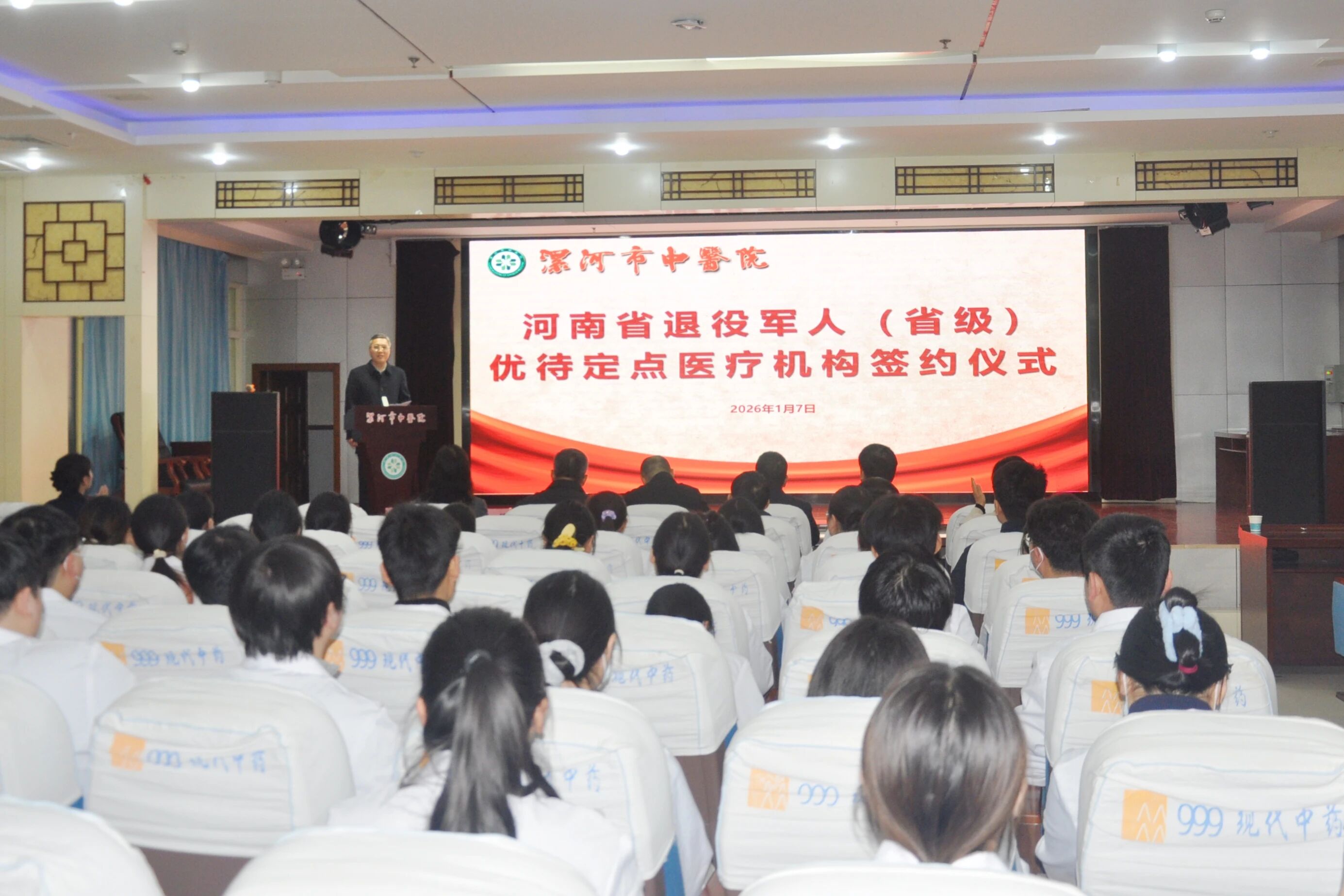 2026年1月7日,“河南省退役軍人(省級)優(yōu)待定點醫(yī)療機構(gòu)”簽約儀式在漯河市中醫(yī)院舉行。河南省退役軍人事務(wù)廳擁軍優(yōu)撫和褒揚紀念處處長劉克非,擁軍優(yōu)撫和褒揚紀念處二級調(diào)研員尤東坡,漯河市衛(wèi)健委黨組副書記、副主任宋孟剛,漯河市中醫(yī)院黨委書記、院長楊軼,副院長閆丙川等出席簽約儀式。簽約儀式由漯河市退役軍人事務(wù)局黨組成員、副局長趙耀華主持。