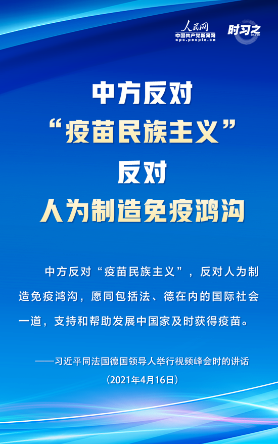 4月16日下午,國(guó)家主席習(xí)近平在北京同法國(guó)總統(tǒng)馬克龍、德國(guó)總理默克爾舉行中法德領(lǐng)導(dǎo)人視頻峰會(huì)。三國(guó)領(lǐng)導(dǎo)人就合作應(yīng)對(duì)氣候變化、中歐關(guān)系、抗疫合作以及重大國(guó)際和地區(qū)問(wèn)題深入交換意見(jiàn)。人民網(wǎng)·中國(guó)共產(chǎn)黨新聞網(wǎng)“時(shí)習(xí)之”欄目摘錄了習(xí)近平在這次視頻峰會(huì)上的重要講話內(nèi)容,一起學(xué)習(xí)。