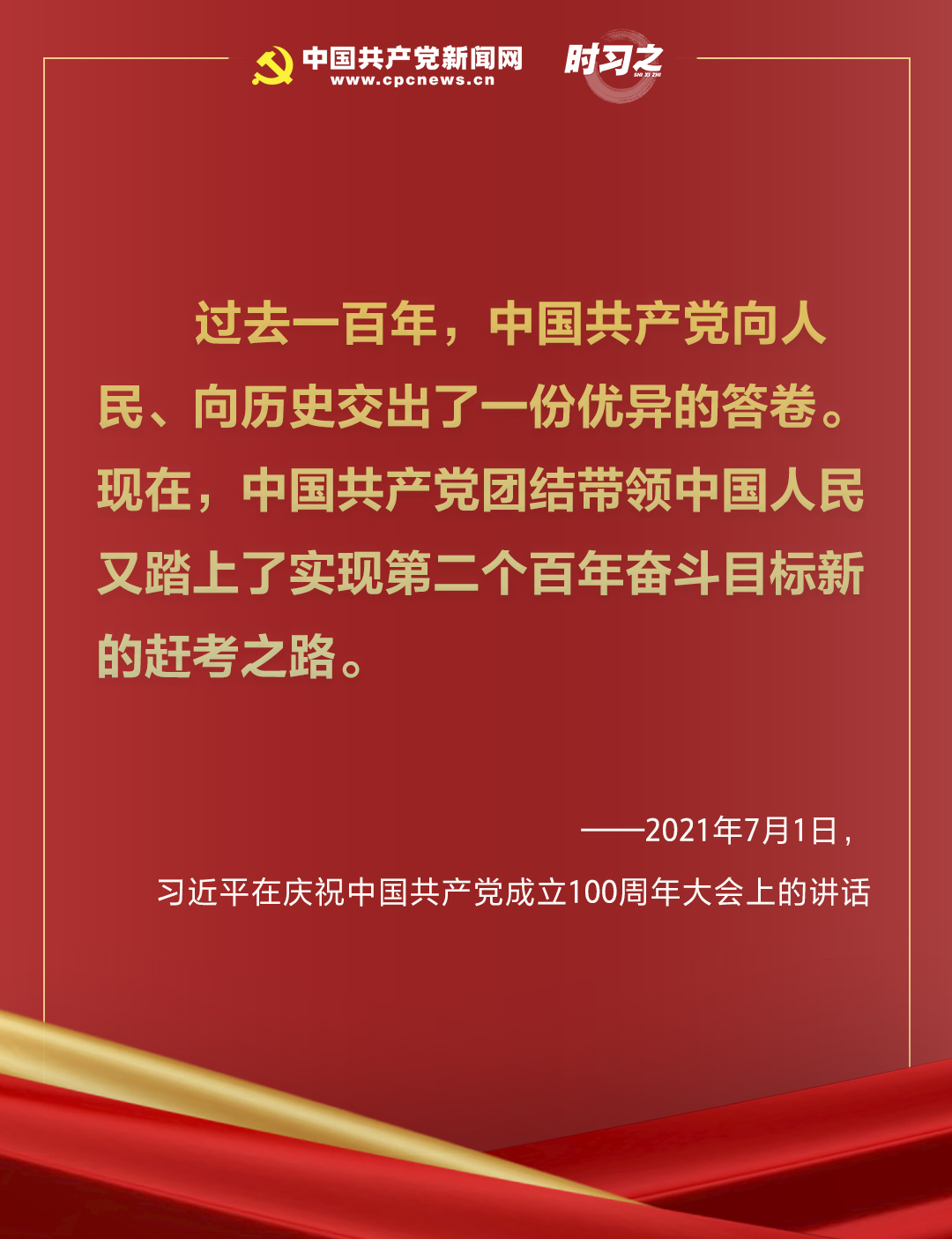 2021年7月,建黨百年的輝煌時刻,習近平總書記在慶祝中國共產(chǎn)黨成立100周年大會上莊嚴宣告,“現(xiàn)在,中國共產(chǎn)黨團結帶領中國人民又踏上了實現(xiàn)第二個百年奮斗目標新的趕考之路。”