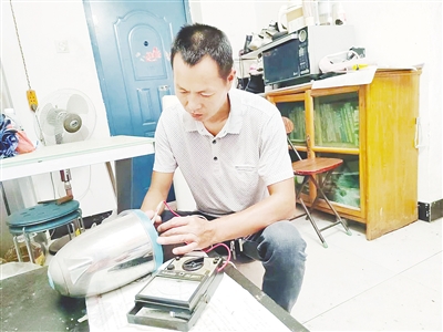 7月24日上午,記者在香堤左岸小區(qū)見到程凱亞時,他正在家修一個電水壺(如圖)。“這是參加社區(qū)志愿服務(wù)活動時,一位阿姨讓我?guī)兔π薜摹.?dāng)時沒有修好,我就拿回來了,等修好了再給她送過去。”程凱亞告訴記者。