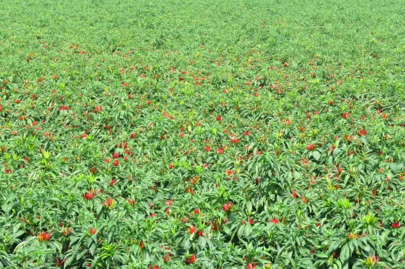 你看看:榮莉萊的辣椒直播大田表現(xiàn)非常的好,縱橫成行,合理密植,通風透光,光合作用強,增產效果明顯,利國利民,一般畝增產都在300斤以上,每畝純收入5000多元,值得在省內外推廣。榮莉萊的這種小麥套種辣椒的種植模式適用于在河南、安徽、山東、河北、天津、陜西、山西、新疆等中北部地區(qū)大面積機械化推廣種植。目前,已經(jīng)在省內外推廣這種種植模式在10萬畝以上。同時,這種麥椒套種畝產小麥在1000斤以上,既保證了糧食安全,又增加了經(jīng)濟收入,是今后大面積推廣種植的方向。
