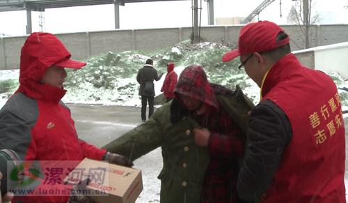 下午三點(diǎn)半,市救助管理站專(zhuān)門(mén)組成救助隊(duì)上街展開(kāi)市區(qū)巡查。由于氣溫比較低,街頭行人較少,為 了能夠及時(shí)發(fā)現(xiàn)流浪人員,救助隊(duì)在火車(chē)站附近徒步尋找。 在市區(qū)人民路清真寺附近,救助站工作 人員發(fā)現(xiàn)了一位拄著拐杖穿著單薄的拾荒老人。經(jīng)過(guò)救助站工作人員簡(jiǎn)單詢問(wèn),得知老人是平頂山市 葉縣人,來(lái)漯河已經(jīng)五六天了,但由于家庭原因,他不愿意回家,也不愿意去救助站。救助站工作人 員看到老人穿著單薄的棉衣,腳上的布鞋也已經(jīng)被雪水打濕,隨即給老人從車(chē)上拿來(lái)了軍大衣和棉鞋 御寒,并幫忙為老人穿上。下午四點(diǎn)鐘,救助隊(duì)根據(jù)熱心市民撥打的求助電話,尋找到一位在外流浪 的婦女,由于該婦女不能清楚的表述自己的家庭地址和姓名年齡,工作人員第一時(shí)間給她穿上御寒的 棉衣棉鞋后,將她送往就近的救助安置點(diǎn)進(jìn)行妥善安置。