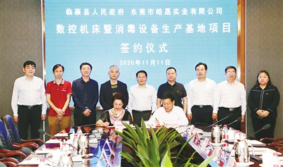 11月11日,市委書(shū)記蒿慧杰出席臨潁縣人民政府與東莞市皓晟實(shí)業(yè)有限公司數(shù)控機(jī)床暨消毒設(shè)備生產(chǎn)基地項(xiàng)目簽約儀式。記者 王慶建 攝