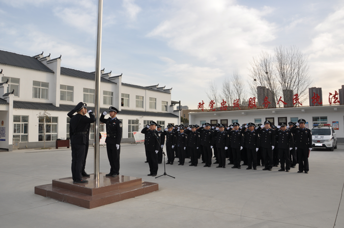 1月10日上午8點(diǎn)30分,分局升警旗儀式準(zhǔn)時(shí)開始,三名警旗護(hù)衛(wèi)隊(duì)員護(hù)衛(wèi)著警旗來到旗桿下,在雄壯的警歌聲中,警旗冉冉升起,60余名民、輔警面向國旗莊嚴(yán)敬禮。升旗儀式后,全體人員重溫了入警誓詞。整場儀式主題突出、內(nèi)涵豐富,進(jìn)一步弘揚(yáng)了愛國主義精神,加強(qiáng)了忠誠文化建設(shè),激發(fā)了廣大民警輔警的政治榮譽(yù)感和工作責(zé)任心。