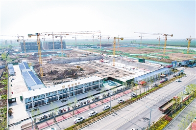 4月11日,河南食品科創(chuàng)園項(xiàng)目建設(shè)現(xiàn)場(chǎng),工人正在搶抓工期趕進(jìn)度。記者 焦海洋 攝