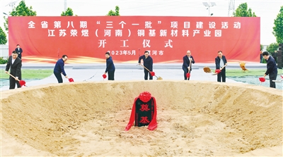 5月8日,市委書(shū)記秦保強(qiáng)等為臨潁縣江蘇榮煜(河南)銅基新材料產(chǎn)業(yè)園項(xiàng)目培土奠基。