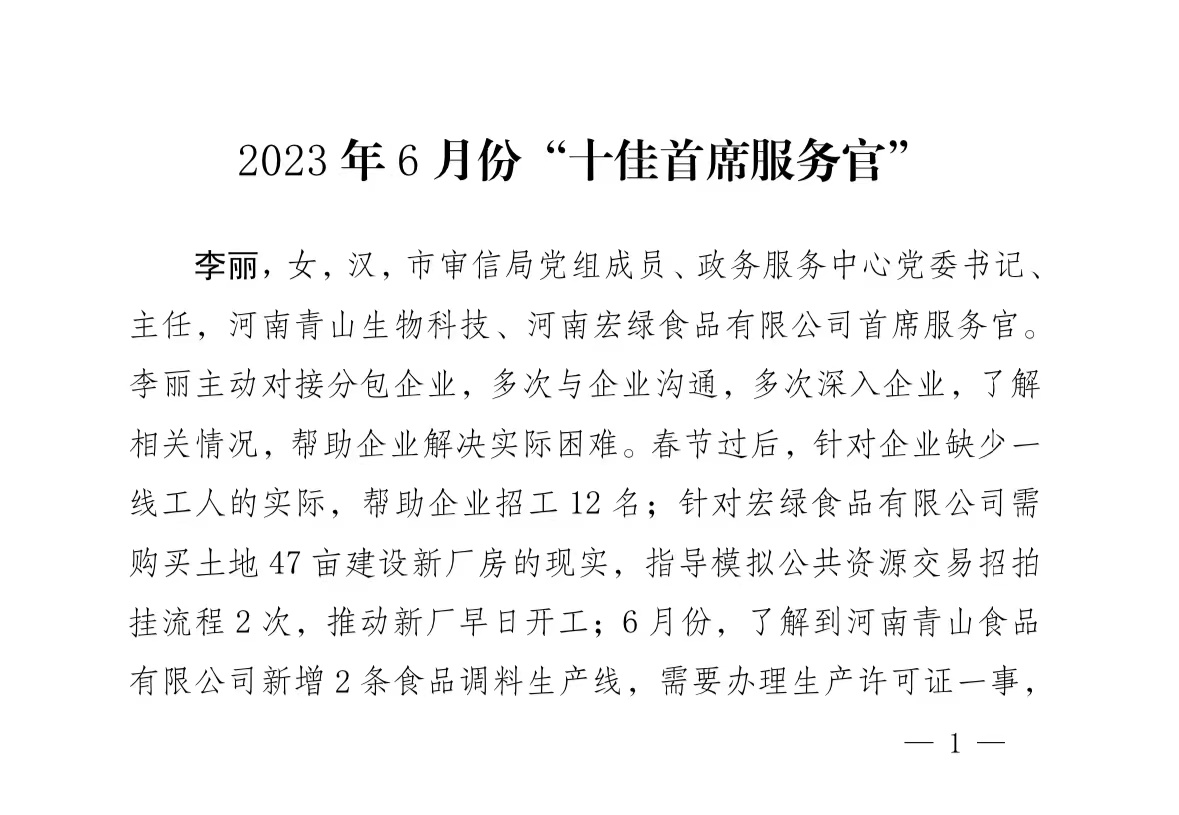 河南省“萬人助萬企” 活動 漯河市2023年6月份“十佳首席服務官”