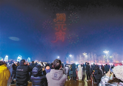 當(dāng)晚,皓月當(dāng)空,沙澧河風(fēng)景區(qū)燈光璀璨、絢麗多姿,紅楓廣場人山人海、熱鬧非凡,處處皆是人間煙火氣。在絢麗的夜景中,人們興高采烈品嘗美食,駐足欣賞精彩的演出,并拍照記錄下這美好的瞬間。記者看到,不少孩子穿上鮮艷的節(jié)日盛裝,手提各式燈籠,在雪地中歡快起舞。 2月24日,正月十五元宵節(jié),沙澧河風(fēng)景區(qū)紅楓廣場,漯河新春元燈會迎來了又一個高潮時刻。數(shù)萬人涌向這里,品嘗美食,觀看精彩非遺節(jié)目展演,欣賞“只有漯河”無人機(jī)表演,過了一個熱鬧非凡的節(jié)日。