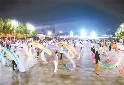 九月十六日晚,紅楓廣場(chǎng),一支舞龍隊(duì)正在表演。