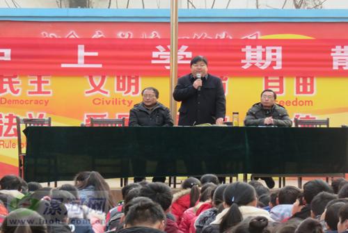 首先,學(xué)校領(lǐng)導(dǎo)王俊輝、潘軍安、潘會(huì)民宣布優(yōu)秀生、進(jìn)步生、優(yōu)秀學(xué)生會(huì)干部獲獎(jiǎng)名單;接著,該校領(lǐng)導(dǎo)李曉光、李亞峰、徐曉明分別為七八九年級(jí)的優(yōu)秀生、進(jìn)步生、學(xué)生會(huì)優(yōu)秀干部頒發(fā)獎(jiǎng)狀,并合影留念;最后,該校校長張滿鴻總結(jié)了學(xué)校本期在教學(xué)教育工作中的成績,對(duì)同學(xué)們在德智體各方面的出色表現(xiàn)表示祝賀,祝師生們過一個(gè)快樂而有意義的寒假。