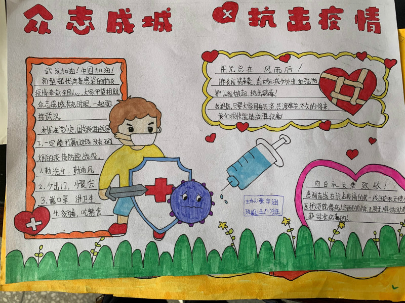 老師們精心準(zhǔn)備的“弘揚(yáng)偉大的抗疫精神”的主題班會(huì)的教案、課件;學(xué)生收集的感人抗疫小故事;以班級(jí)為單位開展了“弘揚(yáng)偉大的抗疫精神”的主題班會(huì),學(xué)生講述的抗疫小故事;學(xué)生在國旗下拳拳的莊嚴(yán)宣誓;學(xué)生鏗鏘感人的抗疫演講比賽;學(xué)生內(nèi)容豐富、栩栩如生的手抄報(bào);全體師生均在活動(dòng)中談感想,寫反思,無不為中國在世界上樹立一個(gè)負(fù)責(zé)任、有擔(dān)當(dāng)?shù)拇髧蜗?,無不為自己是一名中國人而產(chǎn)生深深的自豪感!