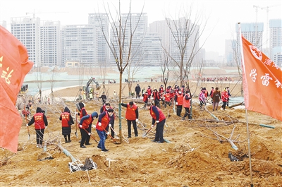 2月22日,我市開展春季義務(wù)植樹活動(dòng)。圖為沙澧河二期綜合整治項(xiàng)目基地植樹現(xiàn)場。