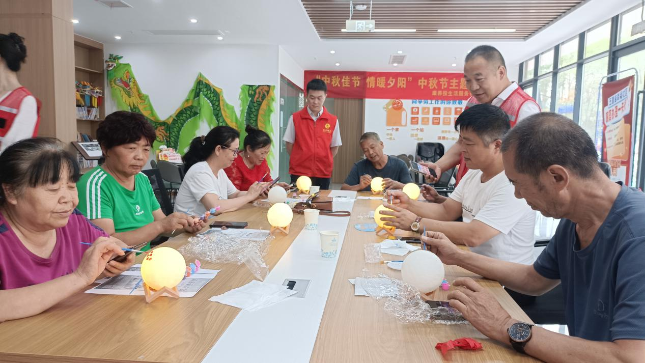 隨后,志愿者耐心細(xì)致地講解了月球燈的制作步驟和技巧。老人們聽得津津有味,紛紛拿起材料包,在志愿者的協(xié)助下,小心翼翼地組裝、繪畫,每一個細(xì)節(jié)都凝聚著他們的心血與對節(jié)日的熱愛。不久,一盞盞獨(dú)一無二、充滿創(chuàng)意的月球燈在老人們的手中誕生,它們或圓潤皎潔,或色彩斑斕,宛如夜空中最亮的星,照亮了老人們的心房。