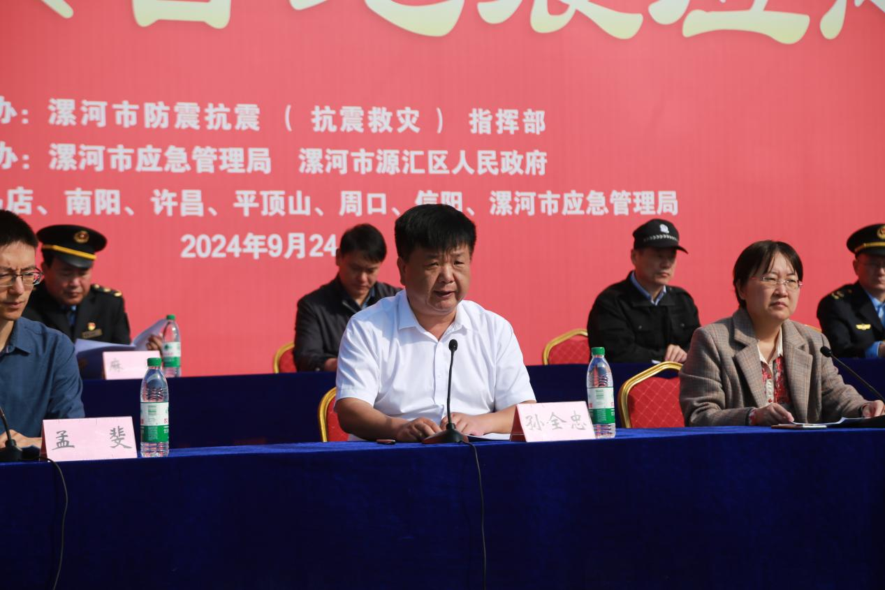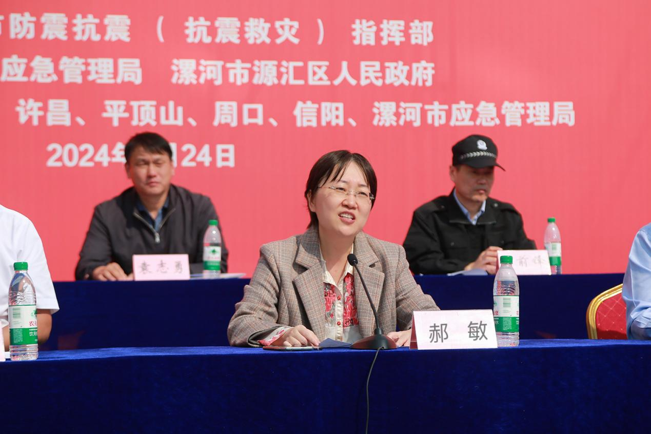 9月24日,豫南地震快速應(yīng)急聯(lián)隊(duì)2024年度聯(lián)合地震應(yīng)急演練在漯河市源匯區(qū)舉行。此次演練由漯河市防震抗震(抗震救災(zāi))指揮部主辦,漯河市應(yīng)急管理局、源匯區(qū)人民政府承辦。平頂山市、許昌市、漯河市、南陽(yáng)市、周口市、駐馬店市、信陽(yáng)市應(yīng)急管理局一同參加演練。河南省地震局黨組成員、副局長(zhǎng)郝敏,漯河市政府副秘書(shū)長(zhǎng)王振甫,漯河市應(yīng)急管理局黨委書(shū)記、局長(zhǎng)孫全忠, 源匯區(qū)委副書(shū)記、區(qū)政府區(qū)長(zhǎng)史一鳴等出席活動(dòng)。