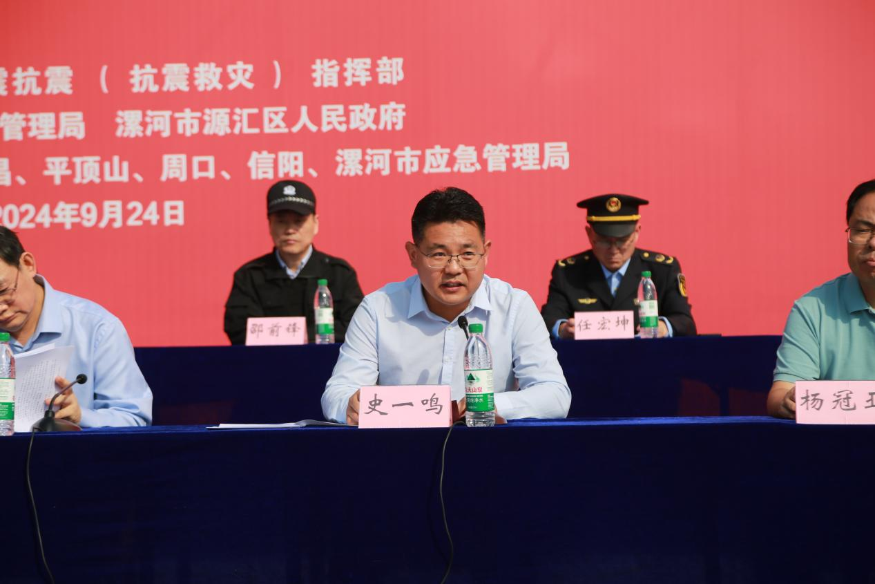 史一鳴致辭中表示,將以此次豫南七地市聯(lián)合地震應(yīng)急演練在我區(qū)的舉行為契機(jī),持續(xù)完善防災(zāi)減災(zāi)應(yīng)急體系,加強(qiáng)人防、物防、技防建設(shè),切實(shí)提升應(yīng)急救援能力,增強(qiáng)居民防震減災(zāi)意識(shí),全力保障人民群眾生命財(cái)產(chǎn)安全。