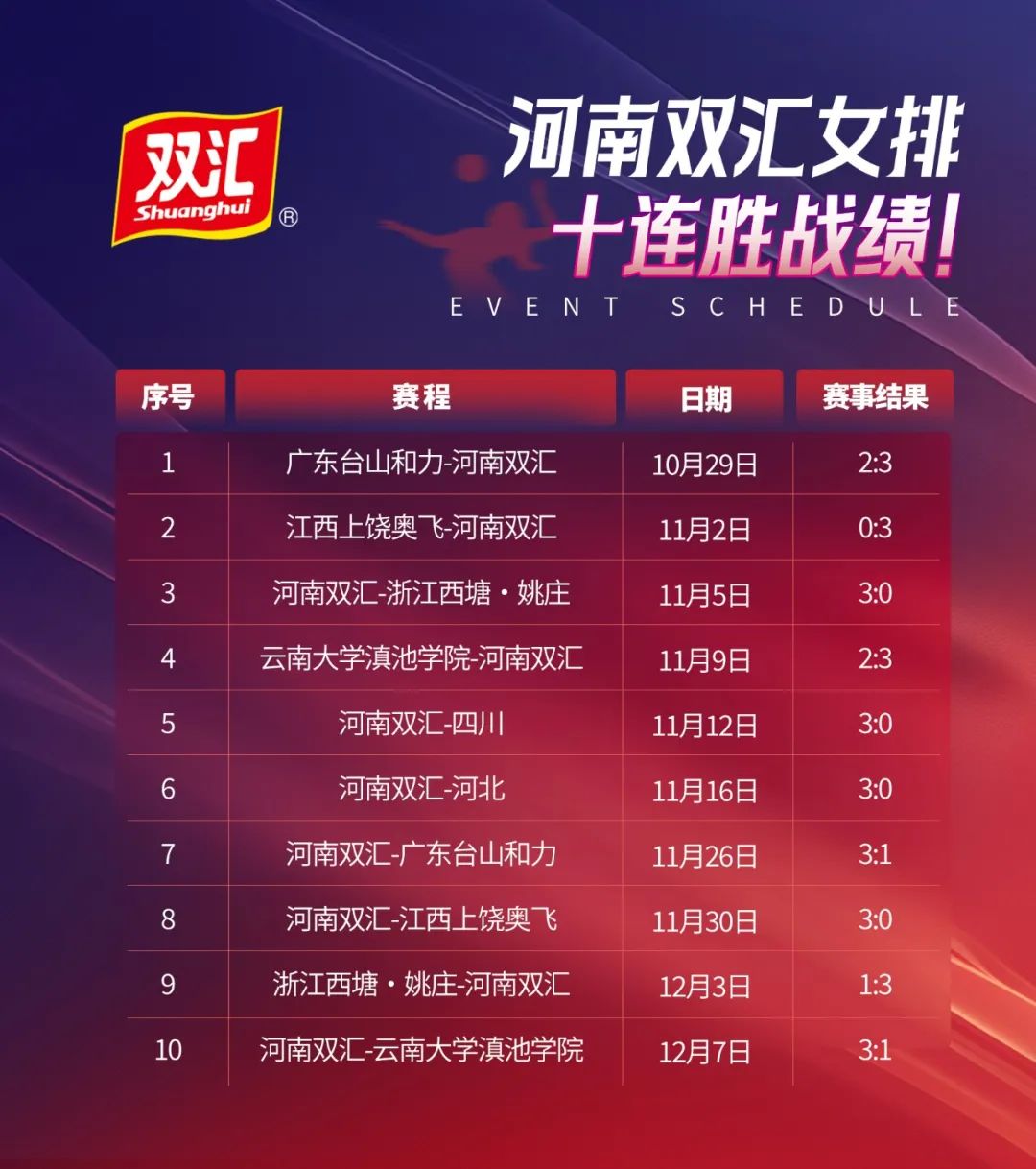 作為從河南省走向全球的食品企業(yè),雙匯曾先后冠名過2011世界女排大獎賽、2012世界女排大獎賽、2013中國國際男排精英賽等多場在河南本土舉辦的國際級排球賽事。2023年,雙匯牽手河南省體育局球類運動中心,冠名了河南女子排球隊。