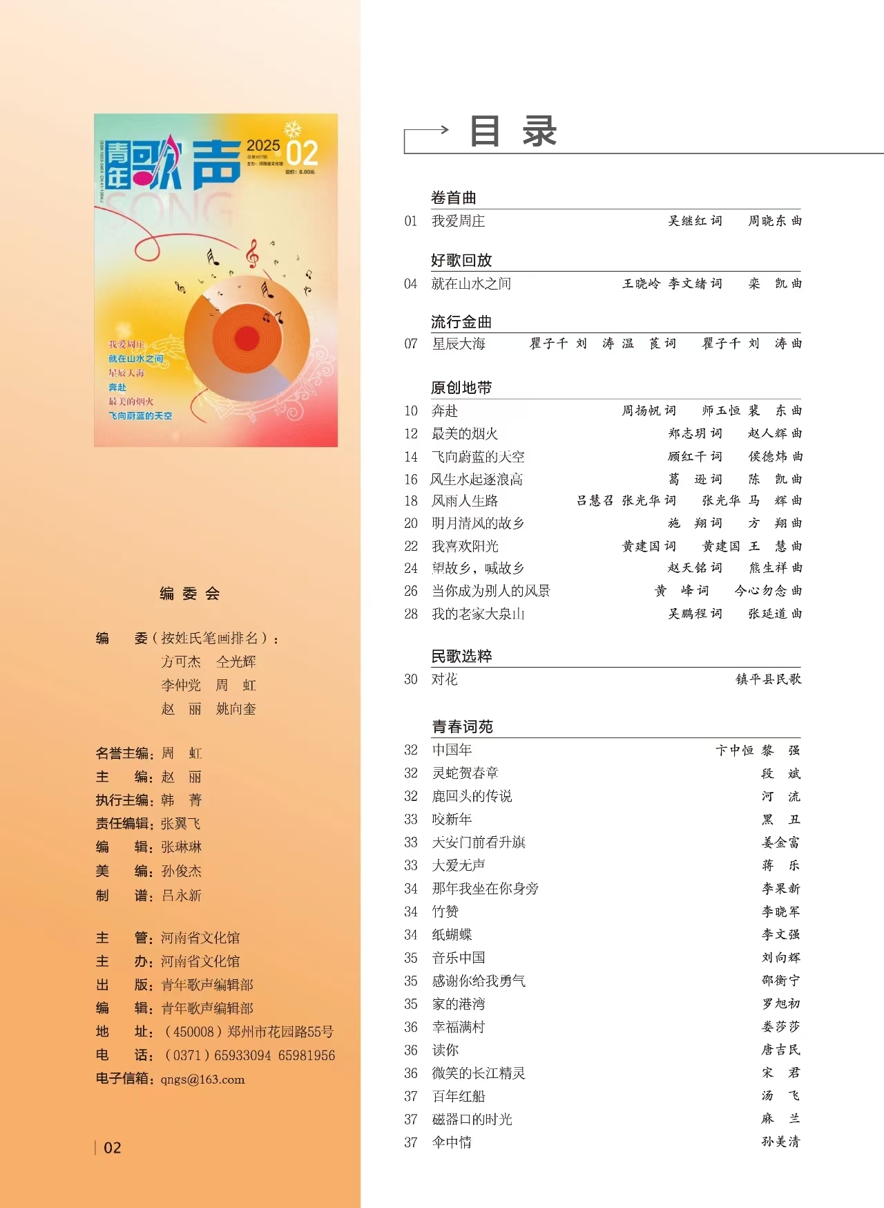 2025年2月5日,音樂雜志《青年歌聲》第二期火熱出爐,由漯河市源匯區(qū)文化館創(chuàng)作的歌曲《我愛周莊》,被選作卷首曲刊載?!肚嗄旮杪暋肥呛幽鲜∥ㄒ灰槐疽魳穼I(yè)社科類月刊,由國家新聞出版總署批準(zhǔn)備案河南省文化館主管主辦國家正式出版刊物。