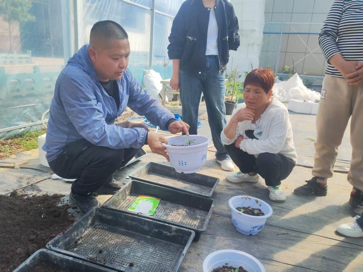 依靠著園林中心專家團隊技術優(yōu)勢,趙基元搭建起了立體化技術支撐網(wǎng)絡:在種植端,邀請園林專家開展“理論+實操”雙模教學,將基質(zhì)配比、控溫催芽等12項核心技術分解為可視化操作流程;在管護端,建立“云上花匠”跟蹤指導平臺,通過新媒體實時解決水肥管理、病蟲害防治等難題;在品控端,制定《優(yōu)質(zhì)種苗培育標準》,將苗株優(yōu)質(zhì)率從60%提升至85%。村民潘大姐展示著學習筆記:“現(xiàn)在既會修剪月季接穗,又能掌握草花輪作節(jié)奏,相當于考取了‘雙科證書’”。