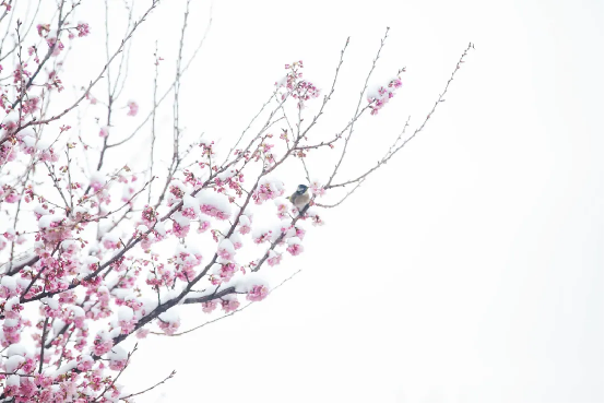 粉櫻臥雪夢(mèng)春歸,靜待暖陽(yáng)綻芳菲。李鑫燕 攝