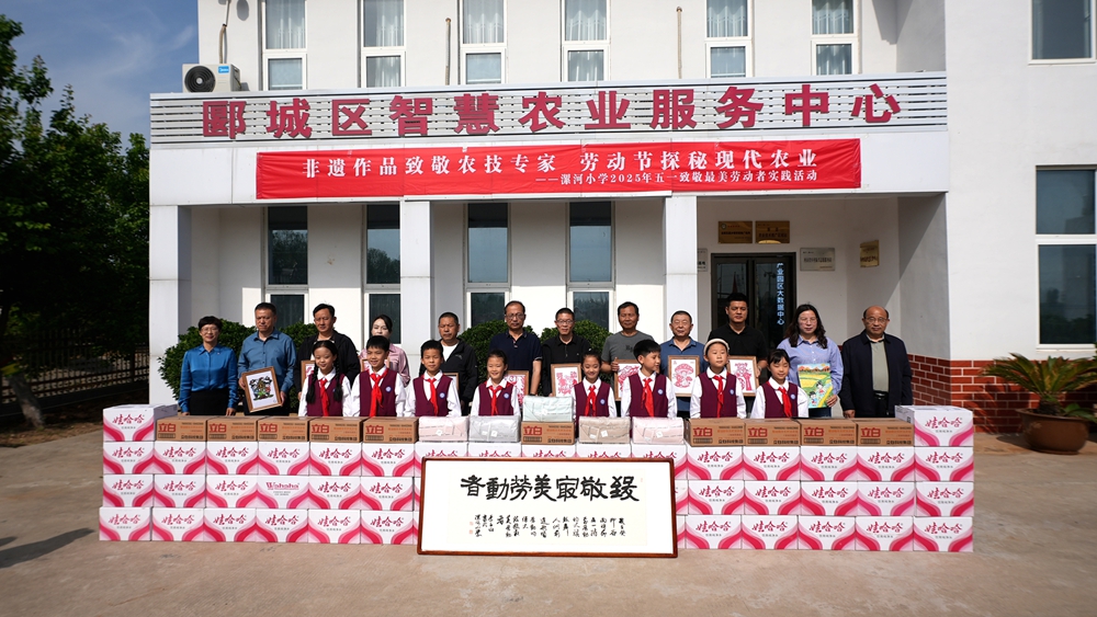 活動(dòng)伊始,漯河小學(xué)學(xué)生代表王彬宇、王鈺萱、田景銳、夏華苒深情朗誦獻(xiàn)詞《致敬農(nóng)技專家》。隨后,少先隊(duì)員們將精心準(zhǔn)備的剪紙、書法、繪畫等非遺作品贈予農(nóng)技專家,以表達(dá)對這些“大地追夢人”的崇高敬意。隨后,漯河市郾城區(qū)農(nóng)業(yè)農(nóng)村局黨組書記、局長張韶杰等領(lǐng)導(dǎo)及農(nóng)業(yè)科學(xué)家團(tuán)隊(duì)代表登臺,接受這份滿含童真與感恩的心意,并與少先隊(duì)員們合影留念。