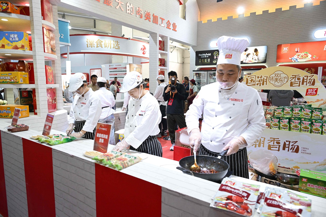 雙匯展廳內(nèi)人頭攢動(dòng),摩肩接踵,琳瑯滿目的產(chǎn)品讓來自五湖四海的參觀者應(yīng)接不暇。雙匯產(chǎn)品研發(fā)人員現(xiàn)場(chǎng)制作各種美食,供參觀者品鑒試吃,美味的產(chǎn)品引來嘖嘖點(diǎn)贊,好評(píng)連連。同時(shí),研發(fā)人員還與大家面對(duì)面討論產(chǎn)品口味,交流制作方法。咨詢產(chǎn)品、洽談合作、品鑒美食、拍照打卡,雙匯展廳憑借獨(dú)特魅力,成為展會(huì)現(xiàn)場(chǎng)當(dāng)之無愧的“人氣王”。