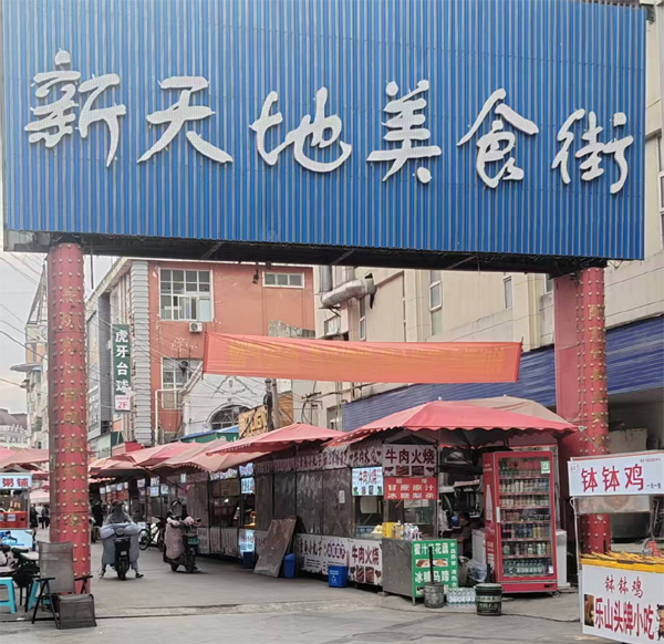 作為漯河核心商業(yè)區(qū)丹尼斯后方的活力樞紐,新天地美食街匯聚了200余家風格各異的美食商戶。得益于獨特區(qū)位與時尚基因,這里已成為源匯區(qū)乃至漯河年輕人探尋美味的必訪地標。街道上,提拉米蘇、舒芙蕾等新晉網(wǎng)紅甜品與傳統(tǒng)烤面筋、炒涼粉等本土經(jīng)典小吃奇妙相遇,碰撞出源匯區(qū)獨有的市井風味交響曲。
