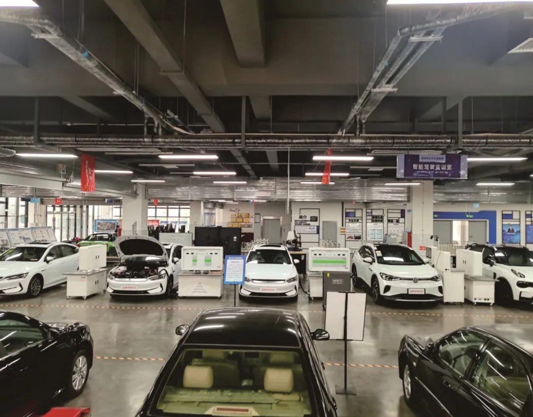 建成博世汽車診斷實訓工作室、新能源汽車實訓中心、智能網(wǎng)聯(lián)汽車應用技術實訓室等16個先進實訓中心。