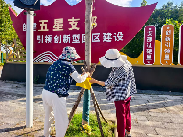 區(qū)園林職工懸掛粘蟲板防治白粉虱