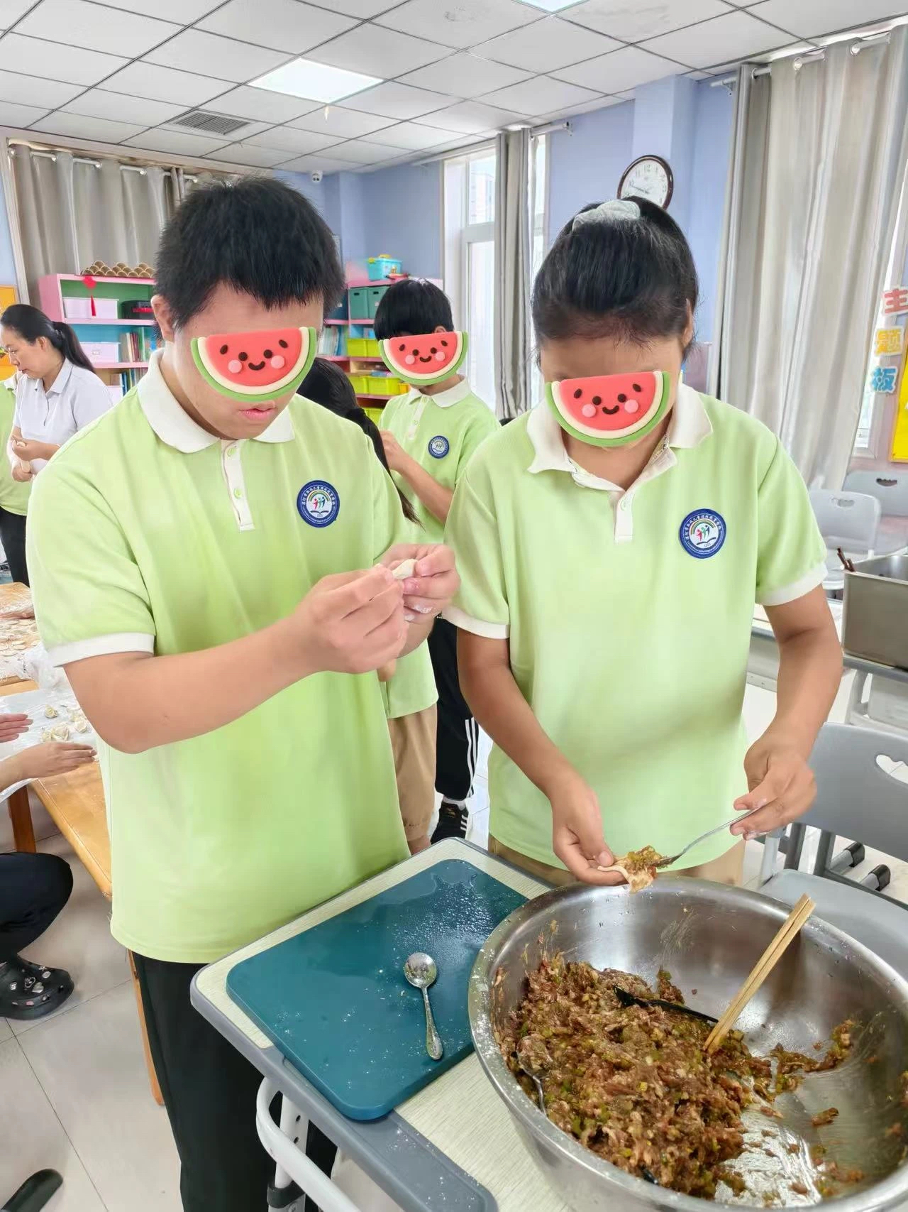 孩子們穿著統(tǒng)一的服裝,臉上洋溢著興奮與期待。桌上,早已準(zhǔn)備好了包餃子的材料和各種口味的餡料,在老師們的指導(dǎo)下,孩子們開(kāi)始動(dòng)手包餃子,他們有的認(rèn)真地看著示范,小心翼翼地嘗試著;有的則發(fā)揮創(chuàng)意,包出了形狀各異的餃子,餃子在孩子們的手中變幻出不同的風(fēng)味,也寓意著生活的多彩與美好。當(dāng)一盤盤熱騰騰的餃子端上桌時(shí),孩子們的臉上洋溢著滿足與幸福的笑容。